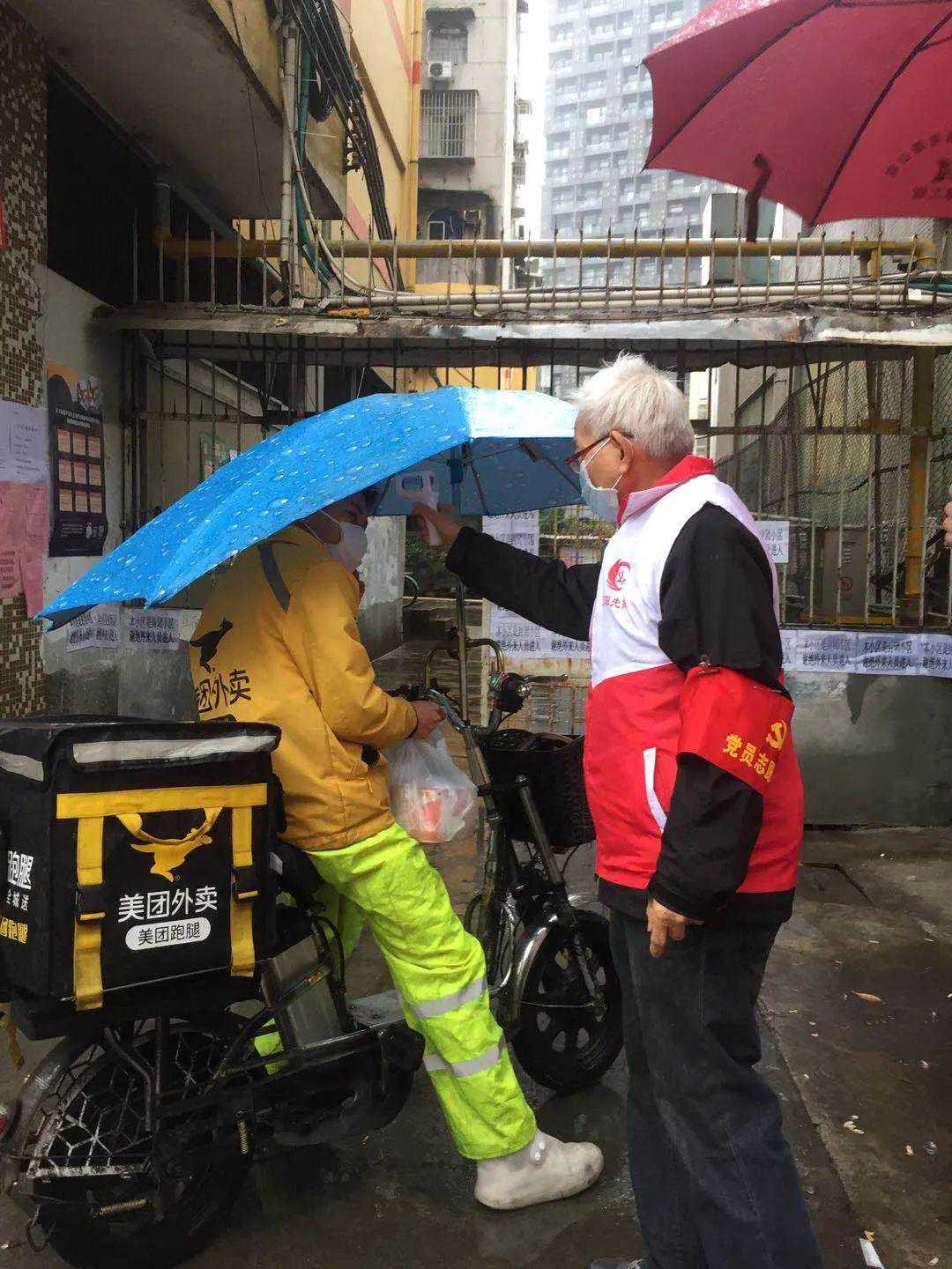 另外一个南珠党委的退休党员庞维清31岁入党,现已经65岁了,虽在2019年诊断患上了恶性肿瘤,但他始终积极乐观。看到这次志愿者招募宣传单之后,他积极联系到居委,踊跃报名参加楼宇站岗志愿者,风雨无阻地守在门口为居民测量体温,即使遇上湿冷天气,也始终积极应对,坚守岗位。疫情面前,他无畏疾病,保持积极的心态,为这场防疫战贡献自己的力量,勇敢守护群众的健康安全。