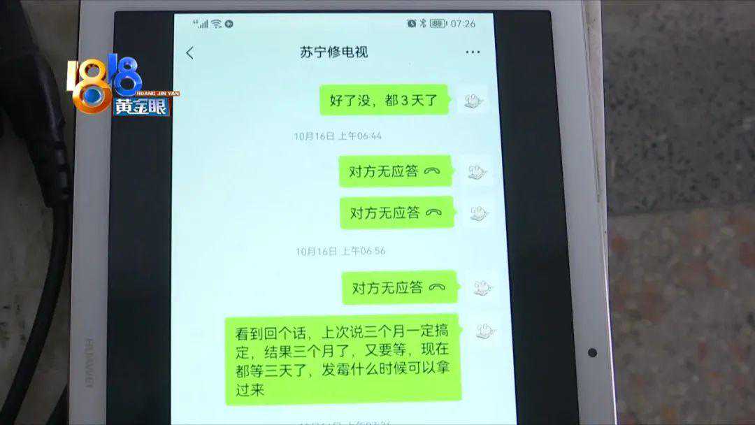 这次电视机被拉走后,他等了三个月,还是没回音。10月16号,他发微信文字过去,又通过微信语言电话联系维修师傅,对方一直没有回复。