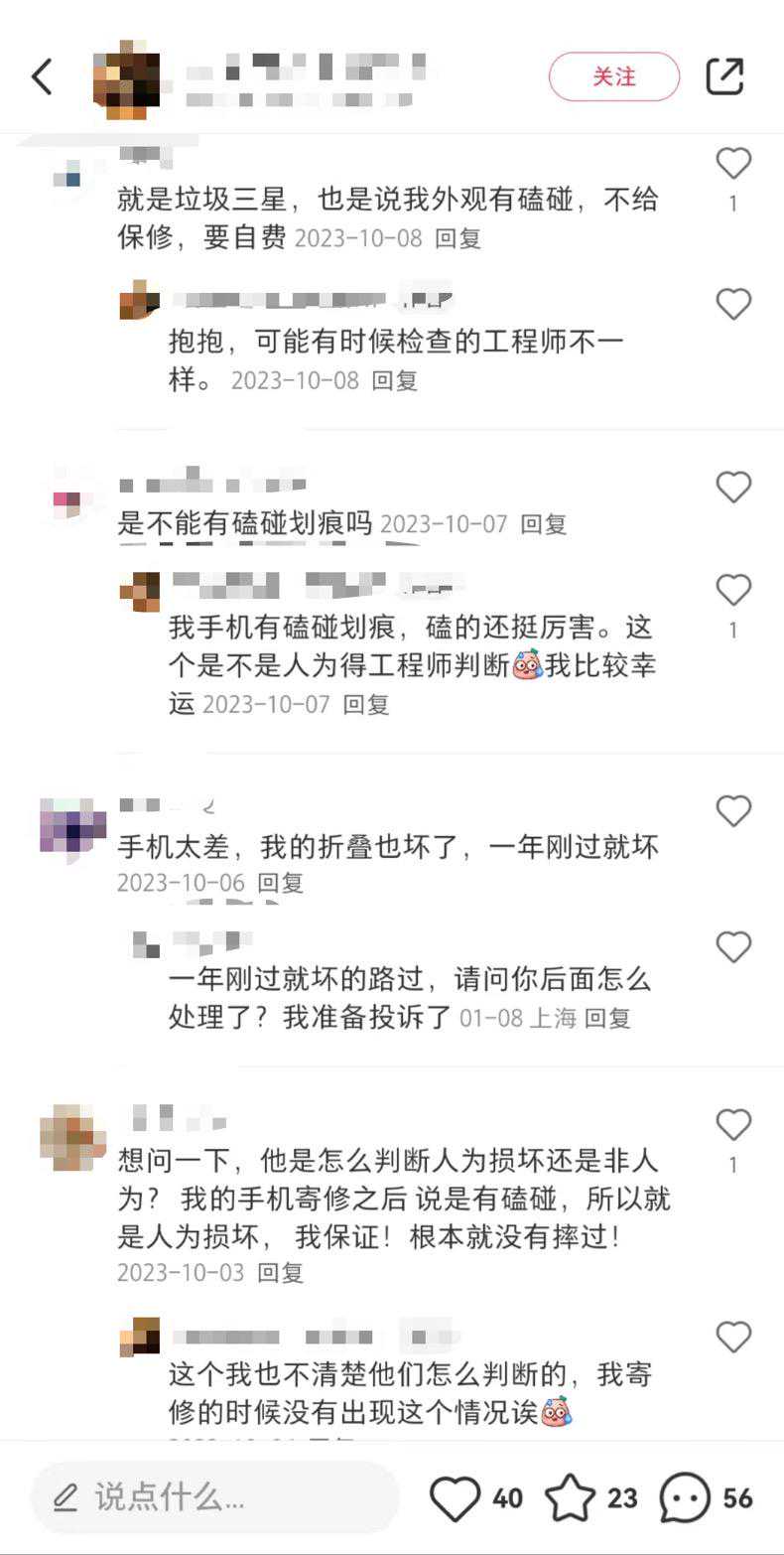 三星折叠手机的维修判定标准,引发消费者质疑。
