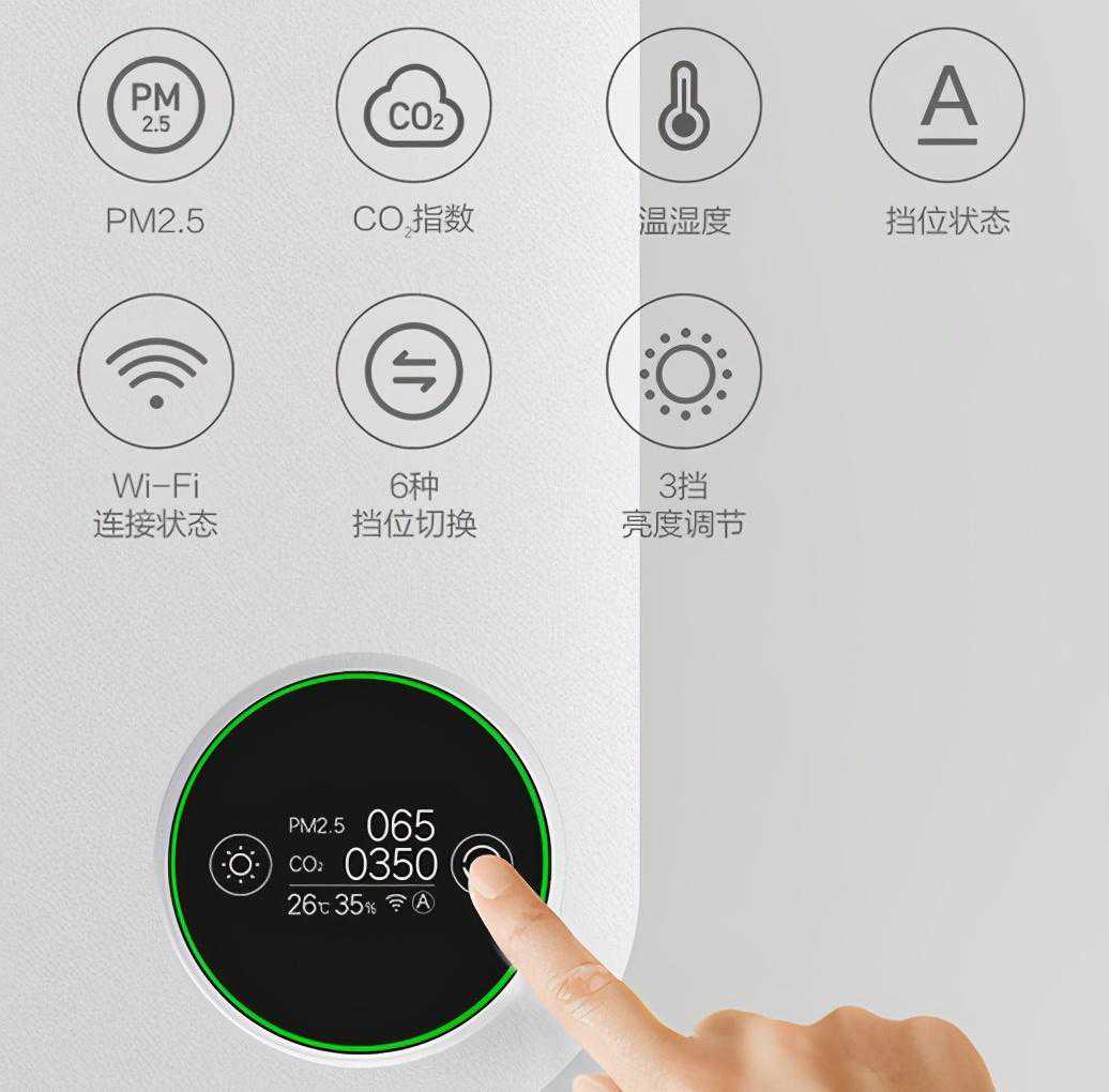 最低运行噪音仅为19.5分贝,电辅热功率800W,内置有颗粒物和二氧化碳传感器
