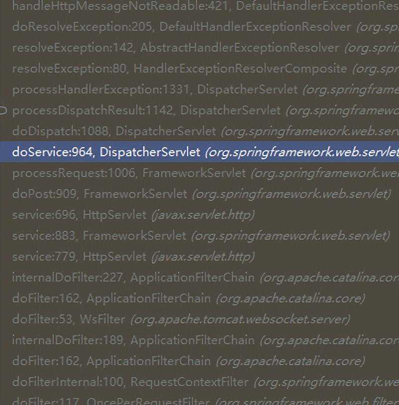 试着在这里打一个断点,从调用堆栈中,寻找一下有没有什么突破点,我们分析下,在processDispatchResult之后的方法,都在怎么包装返回错误信息,我们就需要debug进processDispatchResult方法,在报错之前看,能不能找到什么有用信息