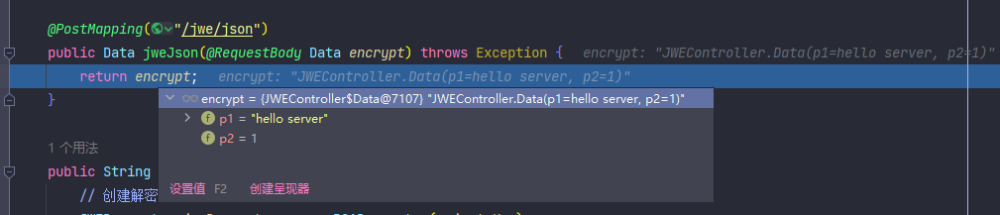 就像这样,我们首先将客户端传过来的数据进行解密,然后自己手动赋值到对应的参数上,每次都写这样的加解密过程,未免有些不妥,我们想做到如图上的效果,自动赋值到controller的参数,我们直接请求一下,看结果怎样?