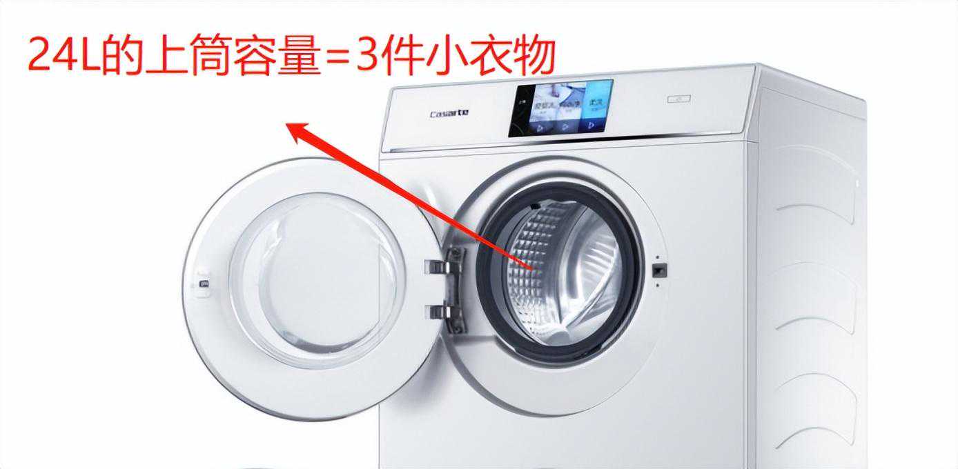 市面上大部分复式分区洗衣机,为了兼顾机体稳定性都会将上筒容量进行缩减,像是卡萨帝C8上筒容量就仅有26L,如此一来能够洗涤的衣物数量就十分有限,用来洗宝宝夏季的衣服问题或许不大,但放入稍厚点的衣服洗涤效果就会变差,以专业的角度来说小容量上筒设计非常的不实用。