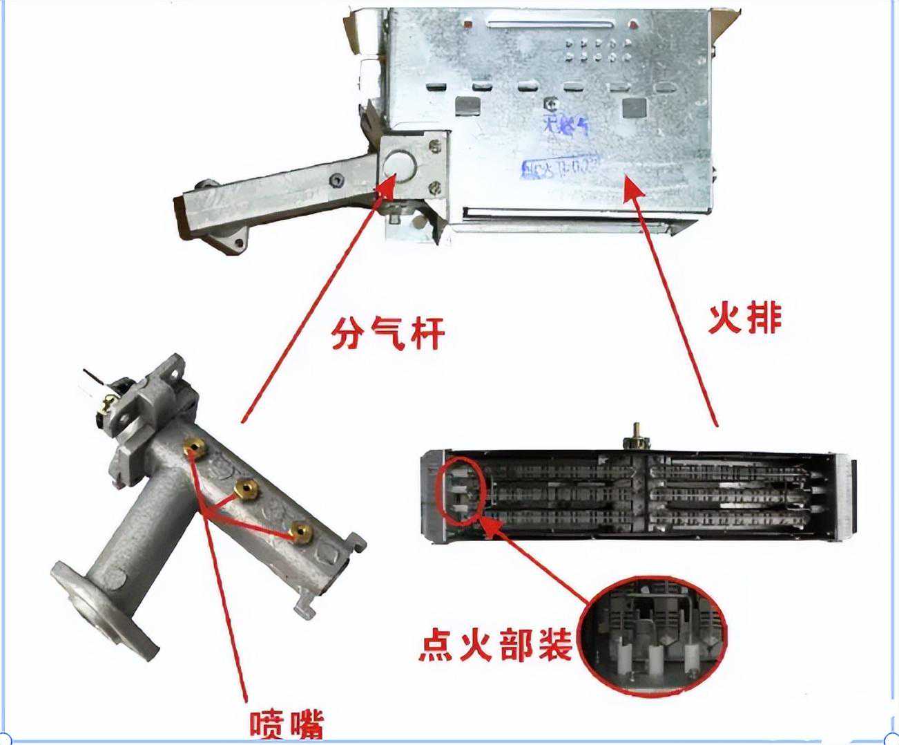 (1)燃烧器内存污物:将细铁丝尖部弯曲,从引射口处插入燃烧器内,反复旋转,进行清理。也可将燃烧器拆下来,用水冲浇。