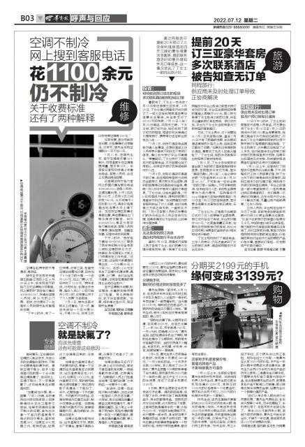 至于空调制冷问题,耿经理说,会重新安排师傅上门检查。有毛病就修好,修不好全额退款,“发票、保修单这些补开,保证裴先生满意。”实习记者常彭朵王煜鑫华商报记者卿荣波摄影邓小卫