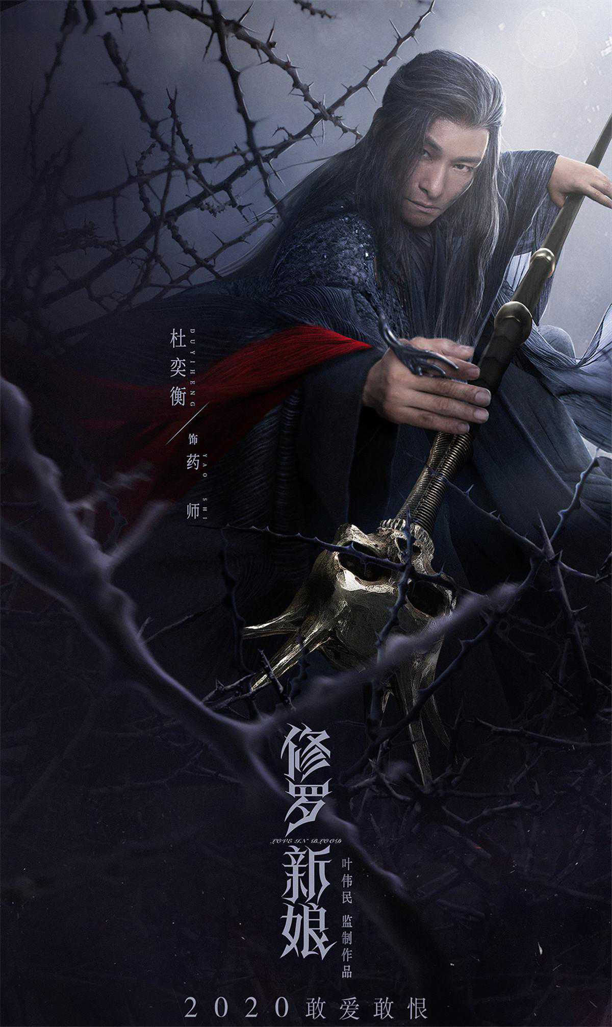 同天曝光的上线主海报,嫁衣新娘表情肃穆,红纱遮眼,血泪泣下。新娘多臂造型具象化了修罗新娘的多面性,新娘一手执剑复仇一手执扇静挽,另外几支手臂,手内或执燃烧红烛,或悬着剔透的水晶眼泪,展现了修罗女尖锐和内心柔软的双面。乌鸦盘旋,红绸飞绕,惊悚唯美氛围感十足。