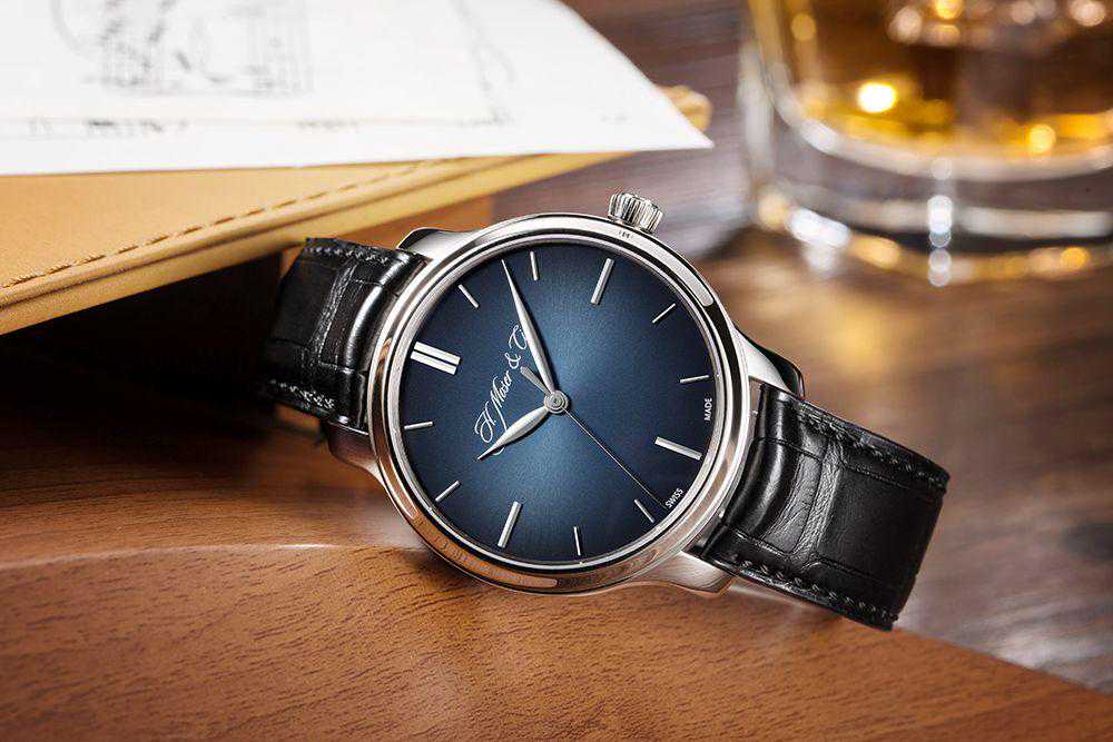 这一款亨利慕时呈现高雅艺术气息,与设计师身上的艺术家气质高度融合。旭日纹镀银表盘采用三段式圆形铂金设计表壳,质感浓厚。浅蓝渐变表盘随光影明暗变动,宝剑型指针与细秒针粗细有致。
