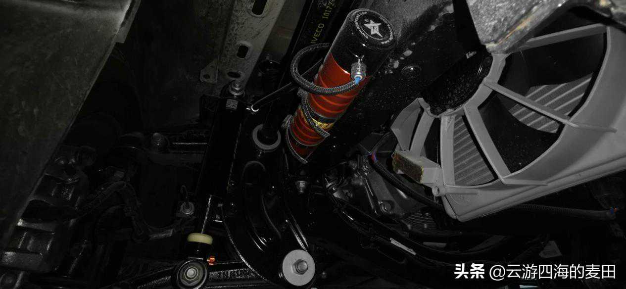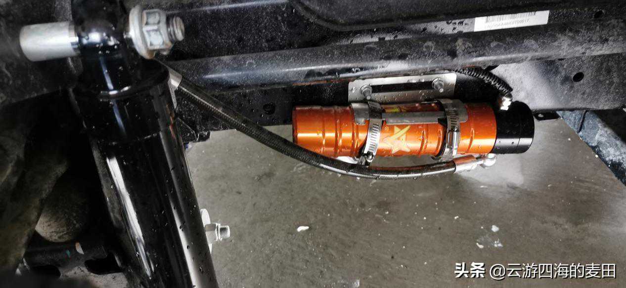 原厂前转向桥采用扭杆弹簧独立悬架,具备稳定可靠结构简单节省空间的特点,后驱动桥则采用钢板弹簧+液压筒非独立悬架,在此基础上改装厂在前后桥均加装了电控可调氮气减震系统,使得车辆操控性更好,侧支撑力更强,同时在极端情况下比空气悬挂稳定。制动方面,采用抗热衰退性更好的PowerPlus通风盘制动系统,后制动器采用行驻一体卡钳,具备驻车间隙自动调整功能,全系标配版本ABS刹车防抱死系统,配合EBD电子制动力分配系统,能避免在紧急刹车时车辆失控,令整车制动效率提升27%。TPMS主动胎压预警系统对轮胎压力、温度实施主动监控。