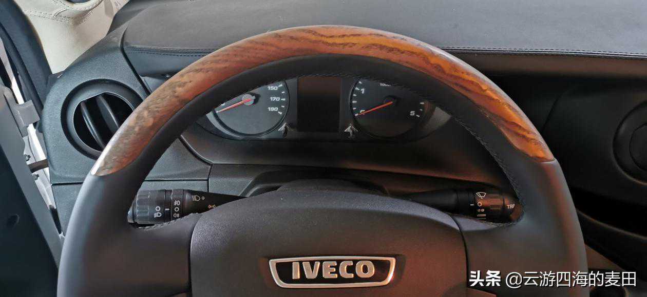 驾驶室内有Eco-Switch节油模式开关,开启后发动机会降低扭矩和功率输出,以达到节油的目的。只建议在车辆空载和轻载运行时开启,重载状态让发动机动力输出降低会增加发动机负荷率,油耗反而会更高。原车小尺寸屏幕换成了10寸液晶显示屏,除仪表台做了宝纳帕皮岑木装以外,方向盘也做了包皮岑木装饰,更显高级。车道偏离警示系统LDWS,可检测到车辆无意识地变道。在车辆处于60km/h以上转向,且转向灯未点亮的情况下,自动激活警示功能,通过控制单元自动发出报警声音,提醒驾驶员注意安全。