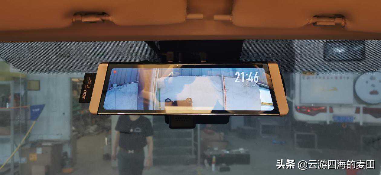 由于后方是生活区,原车内后视镜作用就不大了,于是改装厂加装了一个支持触屏的前后流媒体双摄像头行车记录仪,可以调节镜头视角。“流媒体后视镜”,能够通过摄像头,把车周围的画面传递到后视镜上(道理等同于倒车影像),不仅避免了C柱D柱遮挡,而且摄像头拍摄出的画面极其清晰,而且感觉车后方的视野一下扩大了2到3倍。