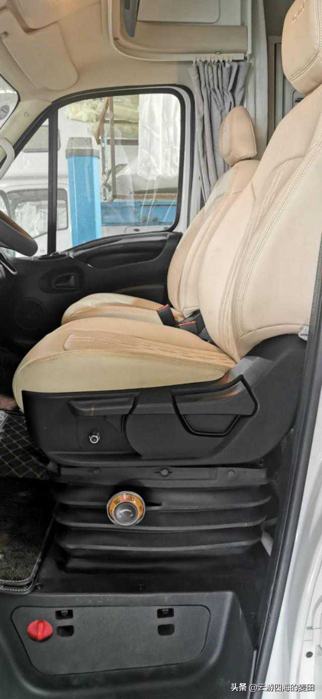 原车机械减震座椅的基础上改装厂增加了液压减震,主驾驶座椅还有通风加热。进入驾驶室需要经过一级台阶,在这种情况下左手需要扶握住东西才能借力轻松进入驾驶室,按理来讲在A柱上需要有一个把手,欧胜省略了,只在副驾驶有。将就一下抓住方向盘上车又发现方向盘距离有点远,最终只能选择一个别扭的姿势抓住方向盘进入车内。