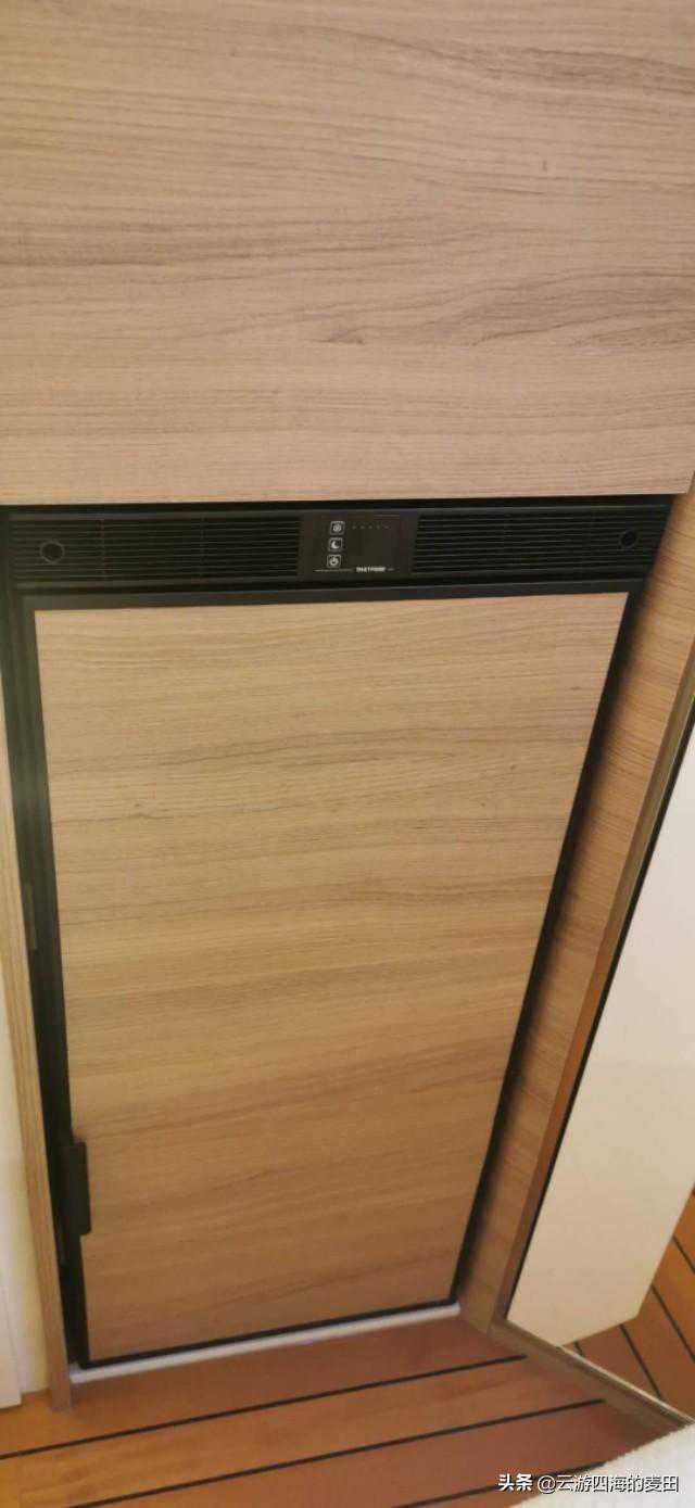 既然要追求品质的生活,那当然绕不开“吃”这个话题了,除了可以烹饪的电磁炉之外,一台能够保持食材鲜美的大容量房车专用冰箱也是必不可少的,让您无论何时何地都能享受到新鲜的美食。这款车搭载的Thetford(赛特福德)T1090E型房车冰箱,容积约90L,其中含6.4L冷冻柜,采用12V直流电工作,具有夜间超静音节能模式,夜间模式耗电仅为0.3kWh/24h,对于不喜欢依赖营地作为依托的房车旅行的车主,如果仅采用电池的话,续航高达2.5-3.5天,对于国内房车使用者而言是款非常不错的选择。冰箱的上方则有一个大储物柜,亦可用作衣柜。