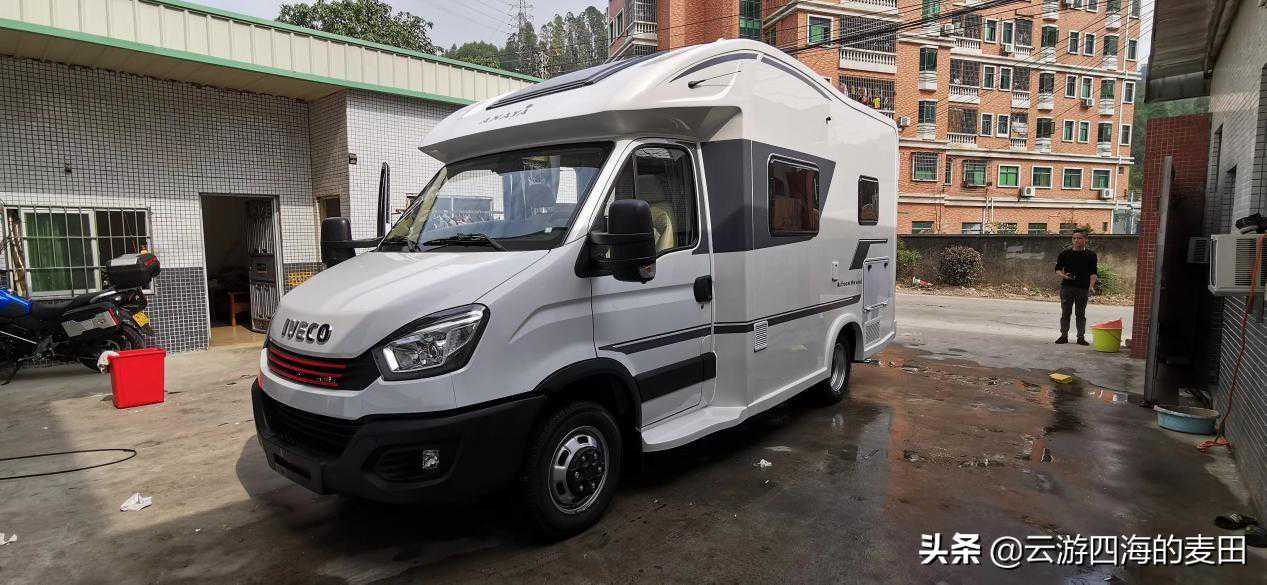 笔者带大家看一款出自广东工匠之手的杰作,基于NEVCO欧胜C45--33房车专用底盘(2.0版)打造的2020款天空之子无拓展小额头自行C型房车,动力方面搭载一台四缸高压共轨柴油涡轮增压发动机,可以输出最大马力145马力3500转/分,最大功率107kw/HP,输出最大扭矩370Nm@1400--2800转/分,与之相匹配的是ZF8HP70(HI--MATIC)自动变速箱,头挡速比为4.71,最高挡位为0.67,多挡位使得扭矩输出的更加均匀,超速挡则能让车辆高速行驶的同时保证经济性,AT变速箱换挡平顺性非常好,使得车辆在提速过程中没有太大的换挡顿挫感。