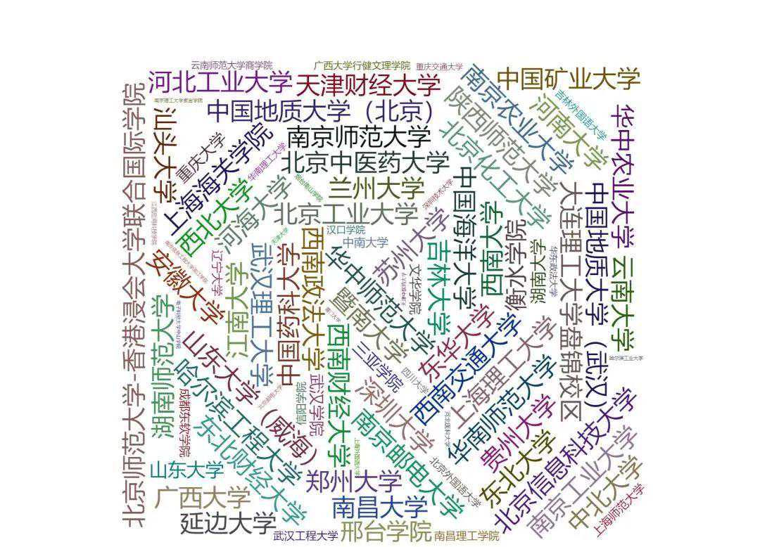 笔者针对全国各省市排名10000-20000名的学生志愿填报情况进行了初步的分析,发现在这个排名段内的学生所填报的高校往往具有相似性。