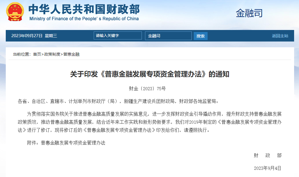 《普惠金融发展专项资金管理办法》修订印发