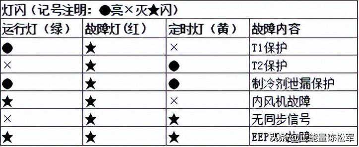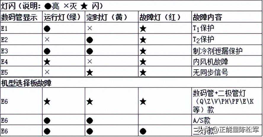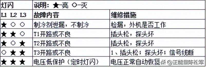 注:KFRd-75LWE/3,KFRd-120LWE009电路除高压保护为21℃灯亮外,其余故障显示同上。