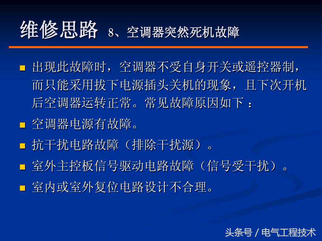 提起空调,相信几乎所有的电工师傅都很熟悉,特别是在炎热的夏天,空调几乎成了家庭的必须品,但空调在使用的过程中难免也会出现故障,当空调出现故障的时候,及时有效的处理是十分有必要的,也是空调电工师傅的基础技能,空调故障在排查的过程中除了需要具备一定的制冷知识,电路知识外,更重要的是要有自己的故障排查方法,好的方法可以让故障排查事半功倍,如果方法不对,有时候不仅无法排查故障,反而会将故障范围扩大,不利于后续的排查和维修,所以方法是很重要的,今天我们就重点来看一下空调常见的9大故障和具体的解决方法: