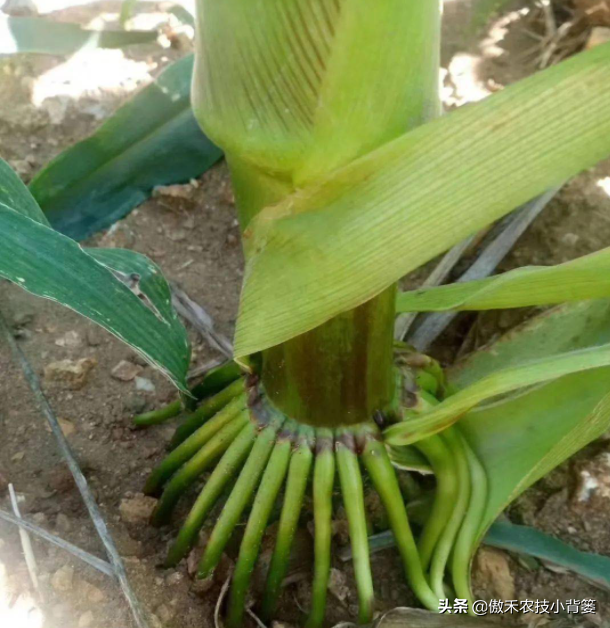 在判断玉米根系是否发达时,我们可以从以下几个方面去观察:新根生长速度快、生长早;主根粗壮、入土深;地上气生根轮层数多且数量多;须细根多且分布深广(玉米须根在土壤中可以达到2米多)。