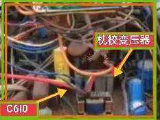首先测试枕校变压器,完好,没问题。再从枕形失真校正电路其它几个元件上查找。当测试到电容C610时,发现容量很小,可能就是它的事。