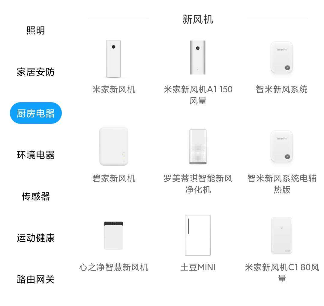 其中部分品牌已下架,这里不再介绍。另外土豆SUPER新风机在米家中被归类为空气净化器,这里进行纠正。