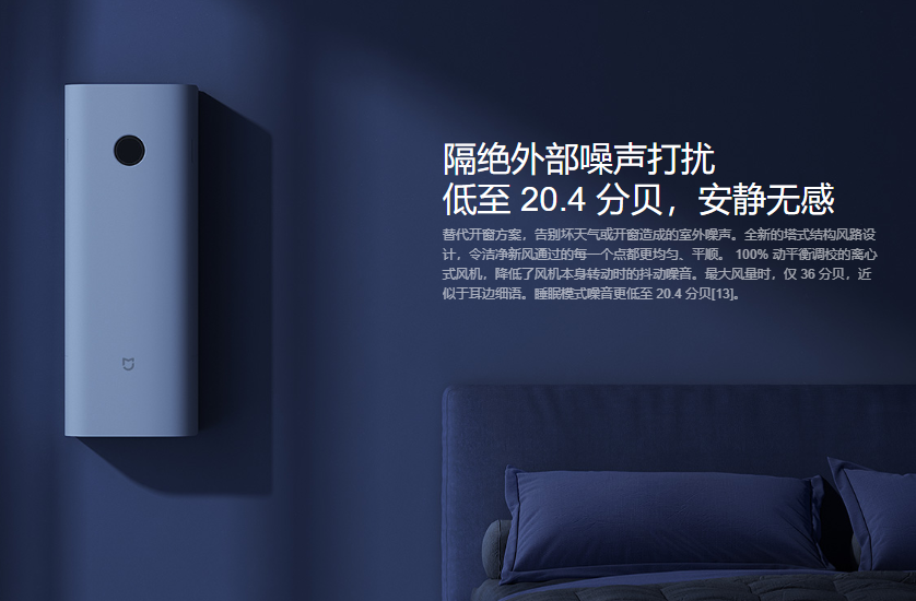 例如这款米家新风机的睡眠模式下噪音为:23.4db