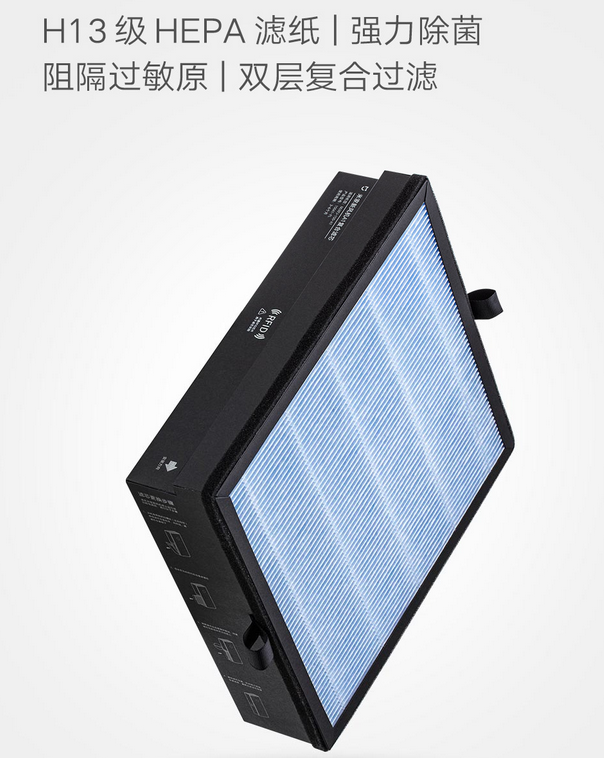在耗材上,这款新风机采用一款H13级别的滤芯,售价为99元。