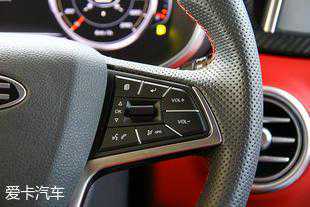 平底三辐式方向盘,3、9点位置打孔处理。让人在上车的第一时间感受到充足的运动气息。只是方向盘握感一般。