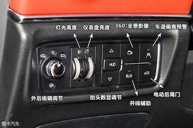 方向盘左侧,除了常规的外后视镜、灯光高度和仪表盘亮度调节外,由于是顶配车型,还多了一些高科技功能开关。
