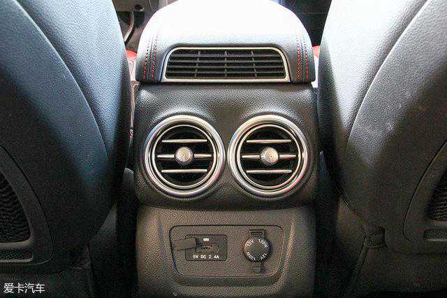 后排从上到下分别为净化器出风口,空调出风口和USB插口以及12V电源插口。