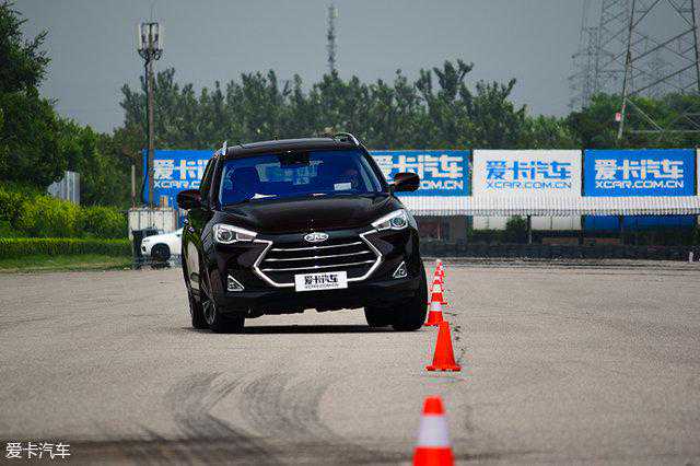 由于江淮瑞风S7的方向盘虚位较大,转向比也比较大。235mm宽的轮胎并没有带给它很强大的抓地力,只要速度稍快,就会出现打滑的情况。在连续的重心转移中,车身的晃动比较明显,这是因为SUV车型重心较高,悬挂行程也比较长,减震器的回弹速度比较慢。在绕桩这种连续快速变向时,减震器被压缩到极限后,由于回弹速度较慢,影响下一次转向时悬挂的整体动作,进而影响车身姿态。