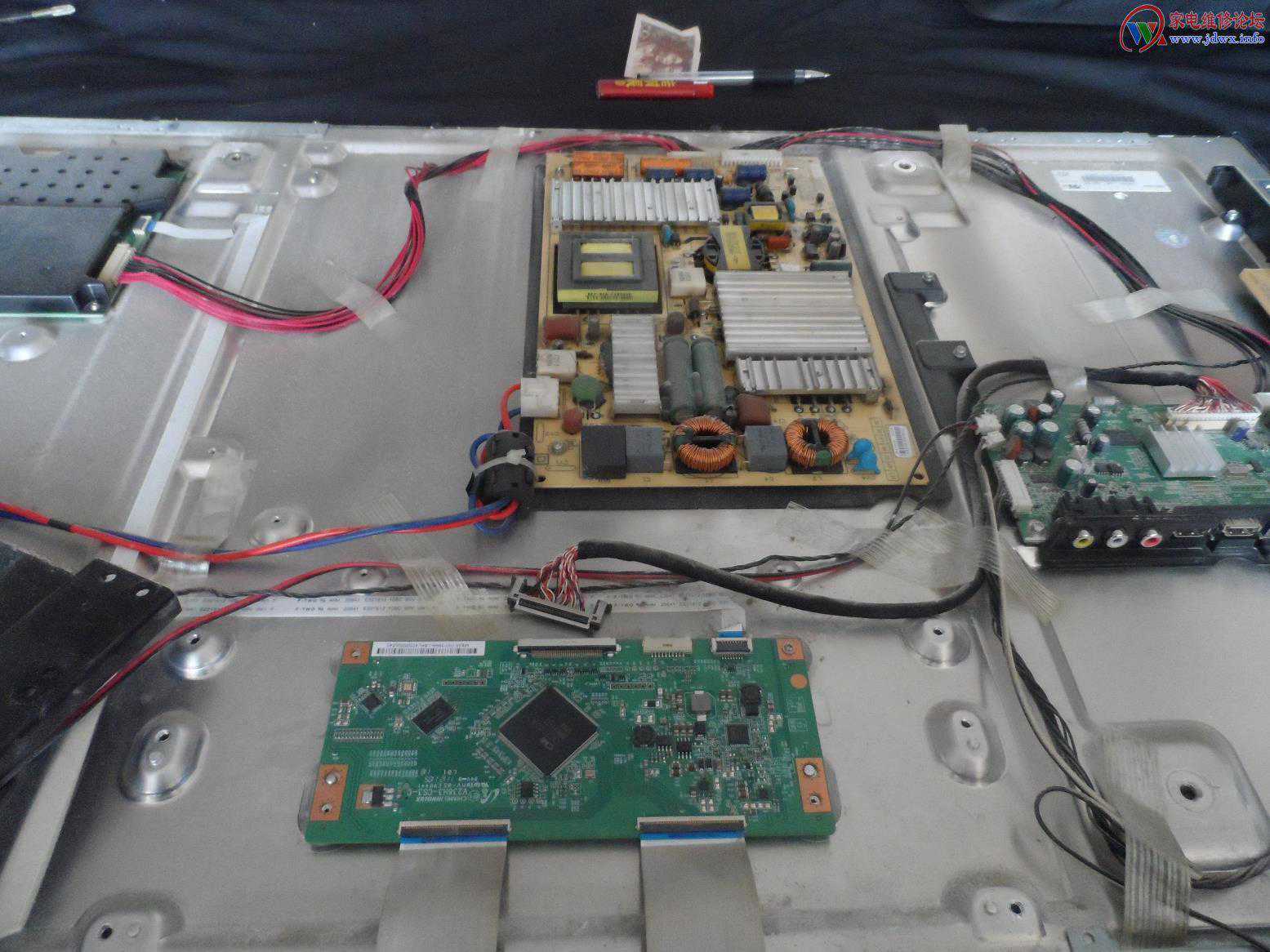 今天修了台创维电视39E65SG白屏,打开机器检查逻辑板电压正常,板号是V236H3-CS-C,是24寸奇美屏逻辑板。结构和V500HK1-CS5基本差不多,因为很多50寸以下这个系列屏,都是用的这个逻辑板,一个系列屏,屏逻辑时序一样.于是备份原数据,重新用编程器抄写V500HK1-CS5数据,试验机器正常。后对照两块逻辑板输入的上屏电压脚和数据脚都对应,安了一块V500HK1-CS5的逻辑板,机器显示也正常。看来逻辑板的通用性很大,后来修了台体彩机大屏是50的AUO屏故障是暗屏,用的逻辑板号43的,最后用42的AUO逻辑板带用一切正常。(供大家参考,一定注意主板输出的上屏电压排列顺序和逻辑板供电排列对应)