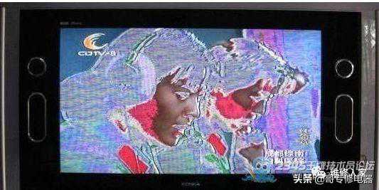 在图像上有扭曲或者网纹干扰时,不要再向数字电路部分考虑,数字电路是不会出现扭曲的,只有象马赛克一样的块状干扰。出现这样的故障时,先用AV试机,图像一切正常,只有怀疑中放、高放电路。例如:TV无图,AV正常。